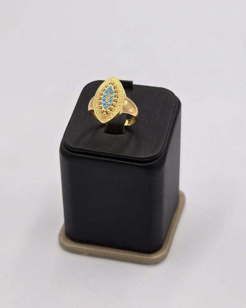 خاتم فان كليف يأتي على شكل عين متقنة التفاصيل تحتضن عدسة مركزية بلون أزرق ساحر. تبرز العدسة داخل إطار من الذهب المصقول، ما يمنح الخاتم توازنًا بصريًا فريدًا ومظهرًا راقيًا يعكس الذوق الرفيع. التركيب المتناسق للفص الأزرق وسط التصميم يضفي عمقًا لافتًا ويجعل من هذه القطعة لمسة فنية تلفت الأنظار.