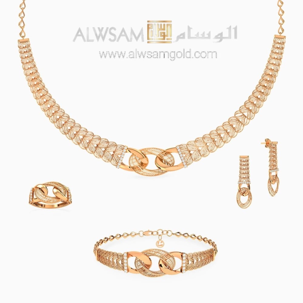 تميّزي بإطلالة مترفة مع طقم ذهب لازوردي عيار 21 المتوفر حصريًا لدى الوسام للذهب والمجوهرات. تصميم يجسد التقاء الذوق العربي بالفخامة الأوروبية، بتفاصيل أنيقة مستوحاة من دار لازوردي الرائدة في عالم المجوهرات.